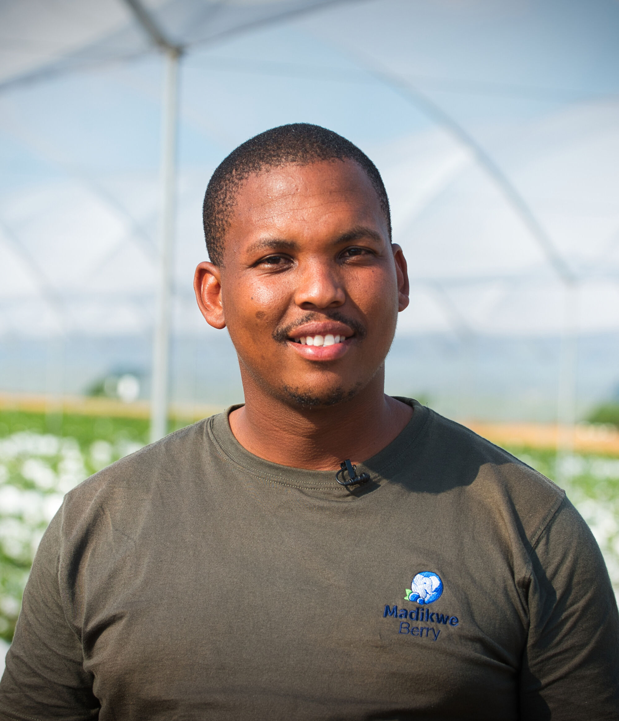 Tiisang was hired as a security guard for Madikwe Berry in 2017 and from the start showed strong leadership skills. He soon moved into production and in April 2020 became the farm’s fertigation and irrigation manager.